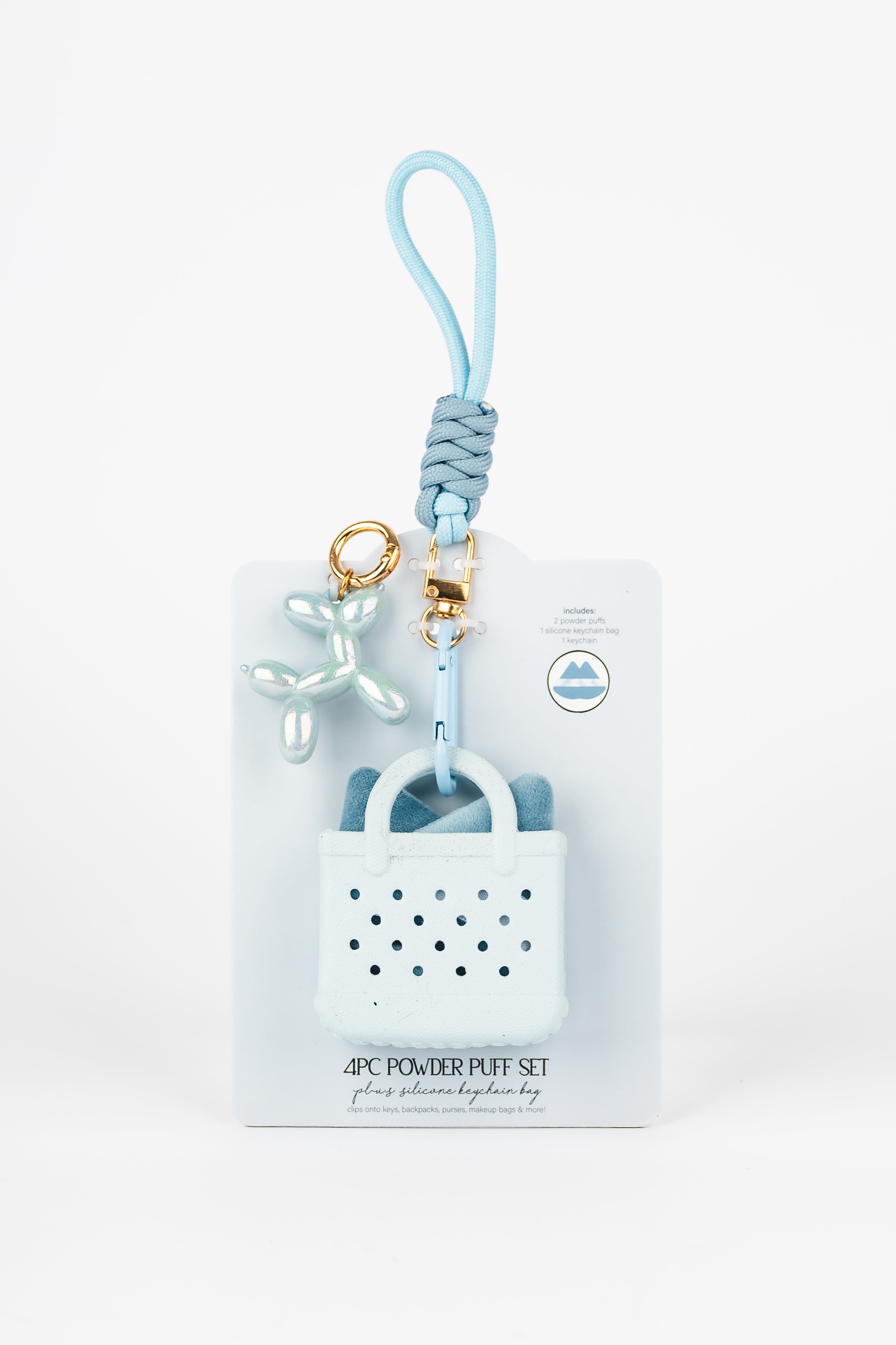 Super cute and flexible, this keychain bag clips onto keys or your favorite bags. It comes filled with 2 powder puffs and can be reused...